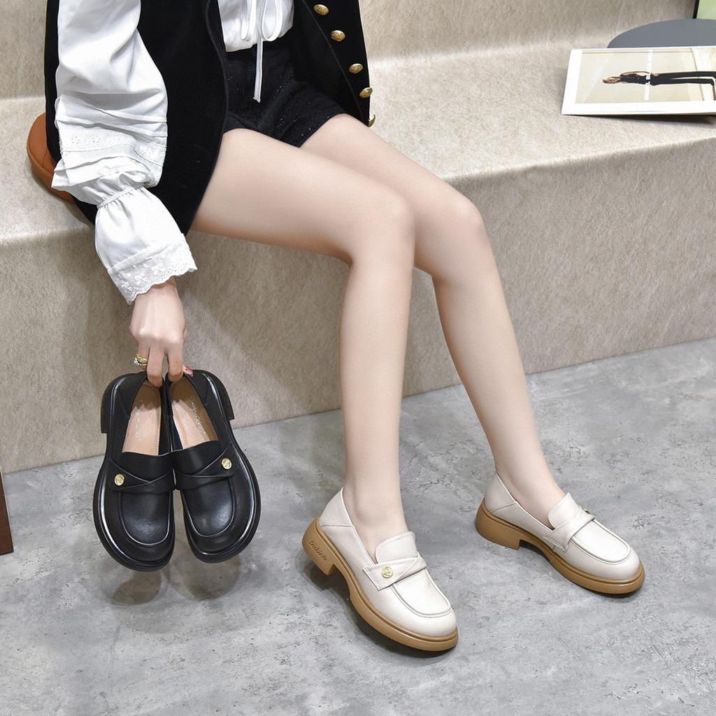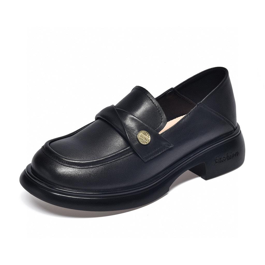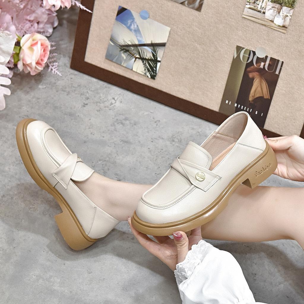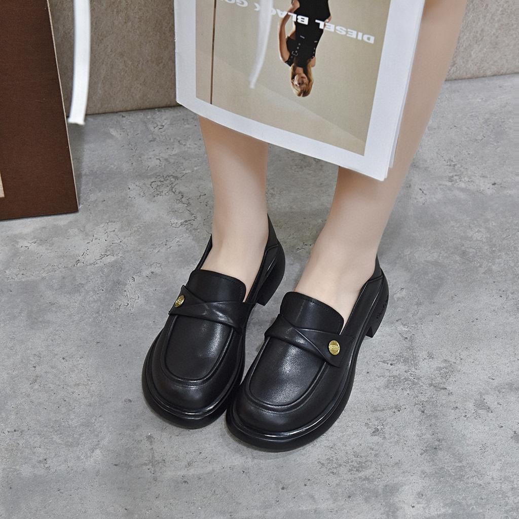 Женские туфли с круглым носком, на пружине, из первого слоя коровьей кожи, с металлической пряжкой, с мелким вырезом, одинарные туфли, маленькие кожаные туфли, в стиле колледж, женские балетки