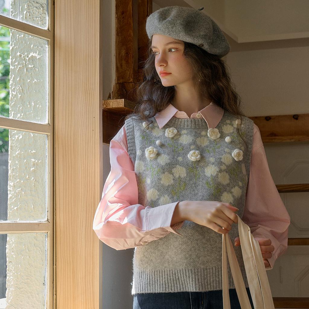 DIMANAF 2025 Осень Женские Свитера Жилеты Без Рукавов Стиль Вышивка Принт Вязаный Повседневный Свободный Короткий Свитер