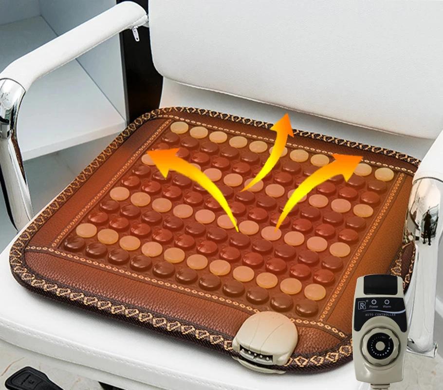 Натуралиновый турмалиновый нагревательный коврик Нефритовая квадратная массажная подушка Подушка для сиденья для офиса и дома для расслабления настроения Регулируемая температура