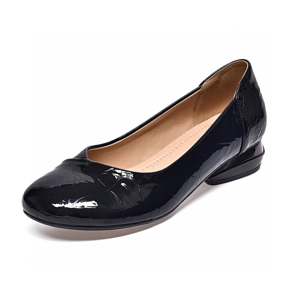 Женские туфли-лодочки с круглым носком и неглубоким вырезом, весенние новинки из лакированной коровьей кожи, на низком каблуке, простые и темпераментные, балетки