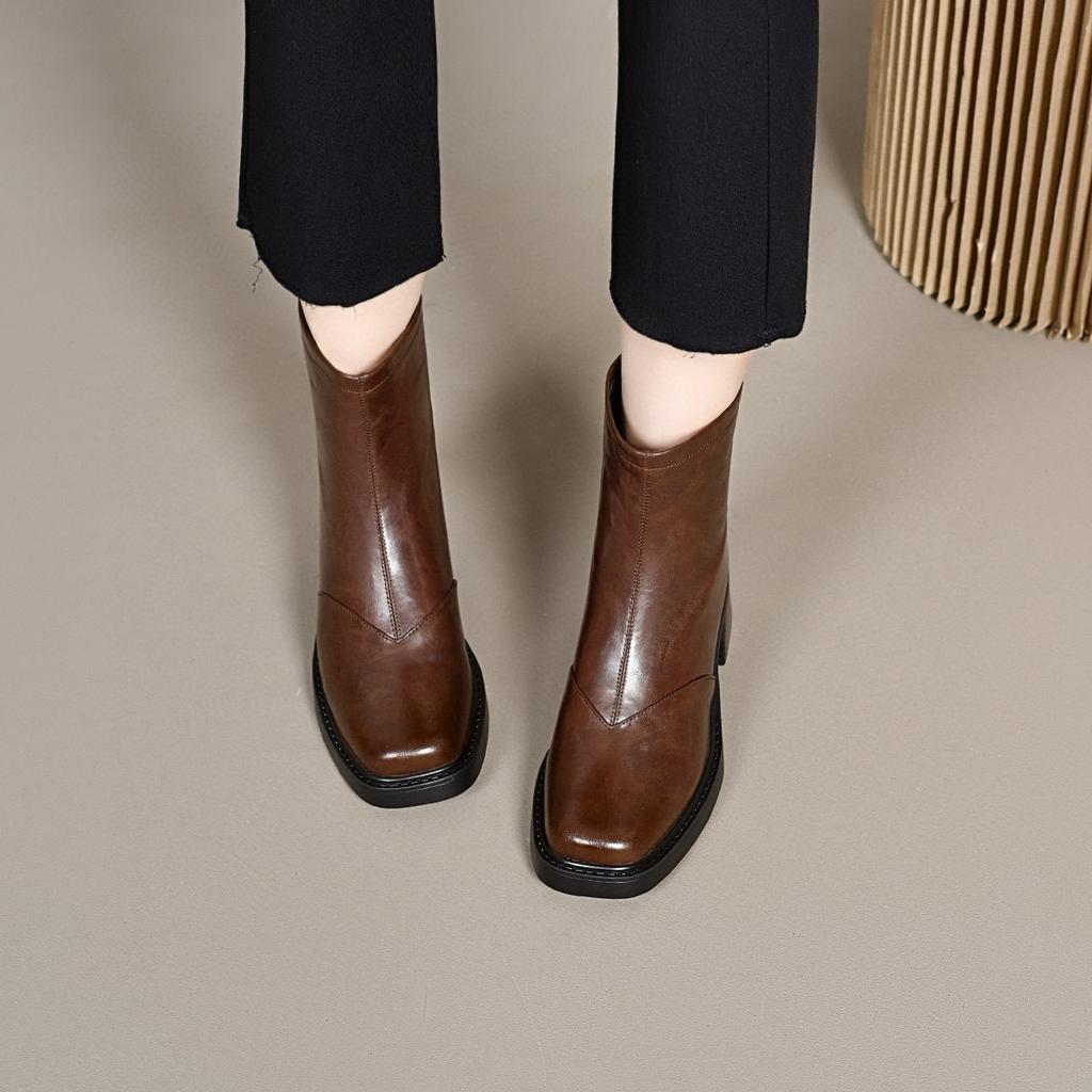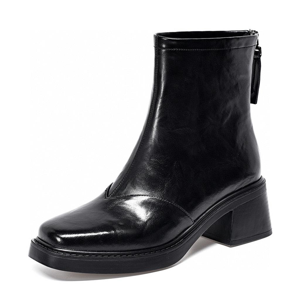 Ботильоны с квадратным носком для женщин, новые осенне-зимние, с задней молнией, на толстом каблуке, прямые сапоги, модные ботинки для женщин