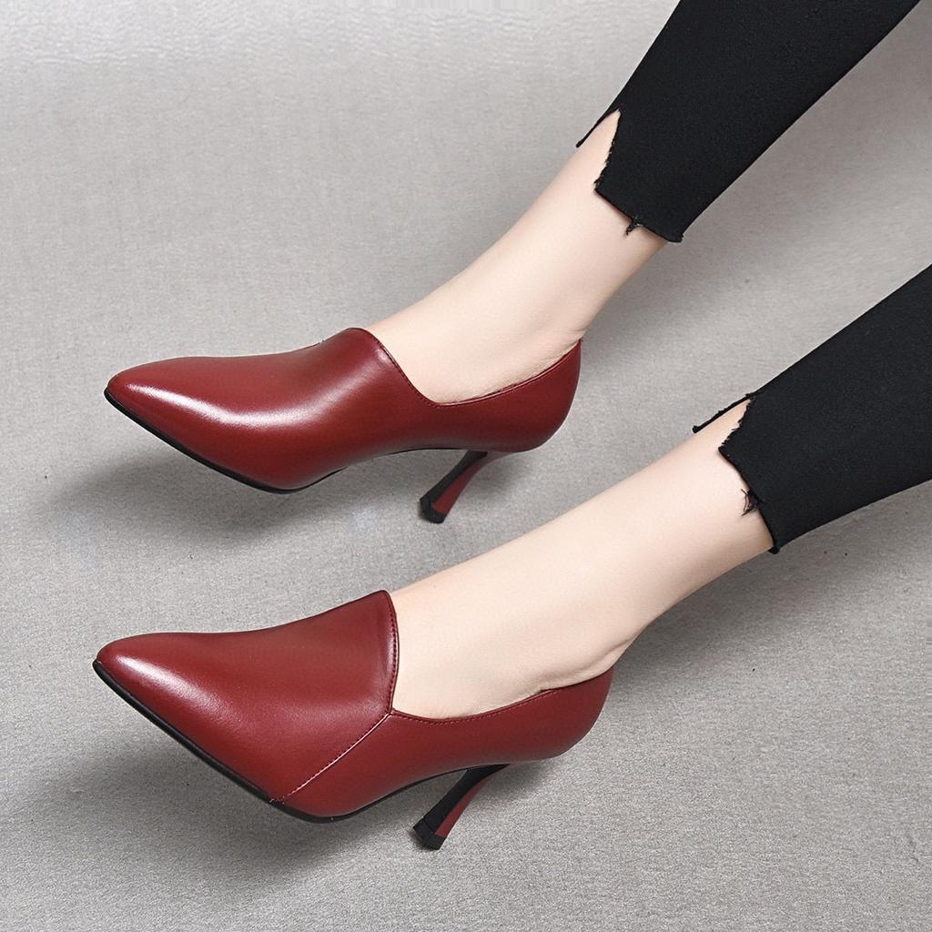 Женская обувь ранняя весна новая мода острый носок глубокий вырез туфли-лодочки первый слой коровьей кожи тонкий каблук тонкие одинарные туфли на высоком каблуке