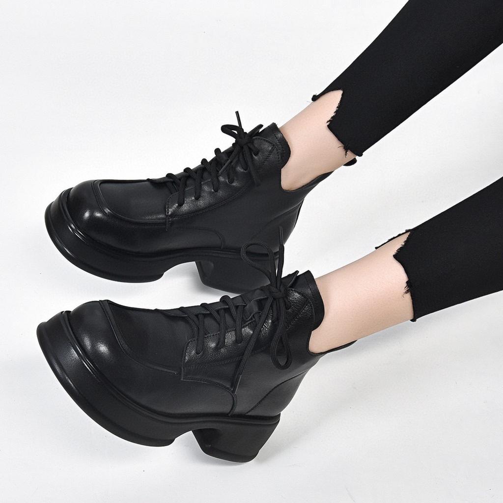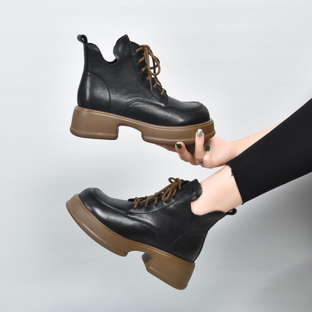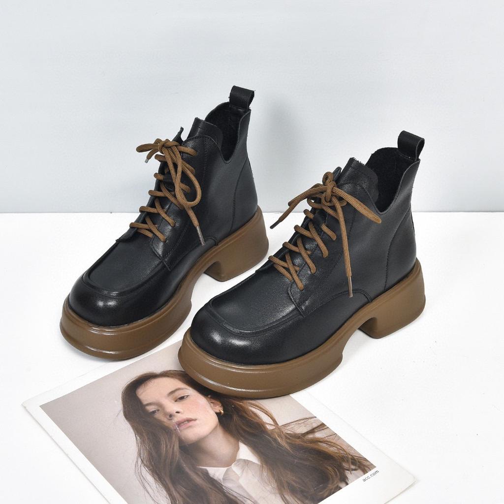 Женские ботинки Мартин на толстой подошве, новые осенне-зимние, ретро, водонепроницаемые, на платформе, на толстом каблуке, кожаные ботинки из кожи коровьей первого слоя, короткие ботинки