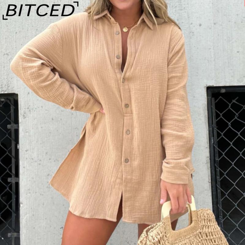 BITCED Женская рубашка из мятой ткани с длинным рукавом и шортами с высокой талией, модный повседневный комплект из двух предметов — купить товар онлайн с бесплатной доставкой по всему миру!