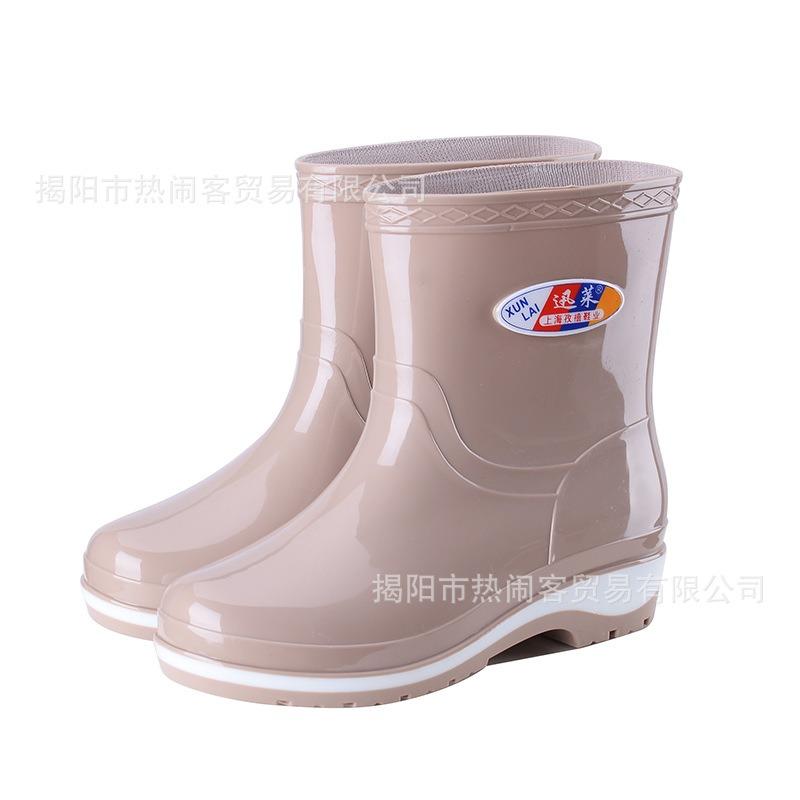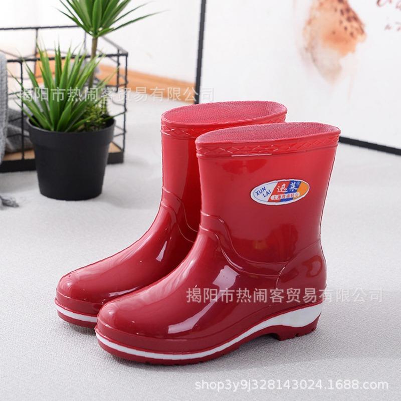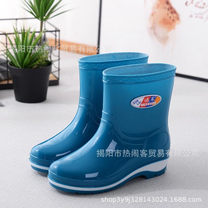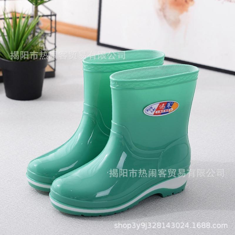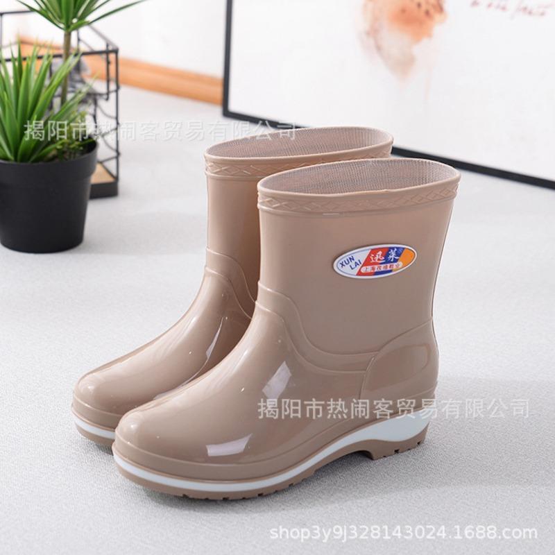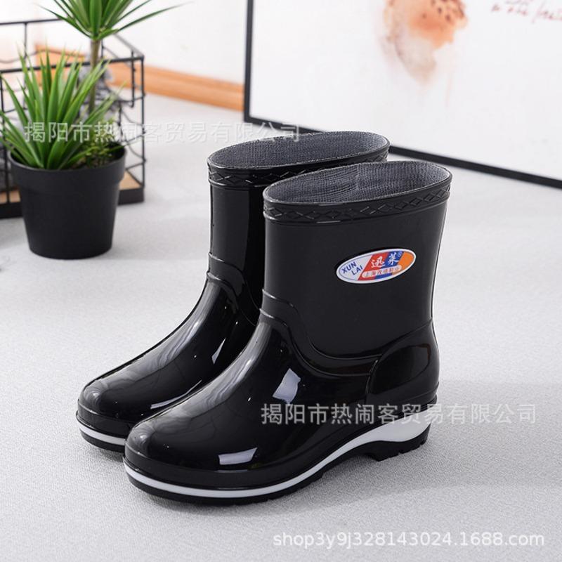 Модные женские резиновые сапоги средней длины, водонепроницаемые сапоги для столовой, нескользящие черные женские резиновые сапоги, взрослые хлопковые термосапоги