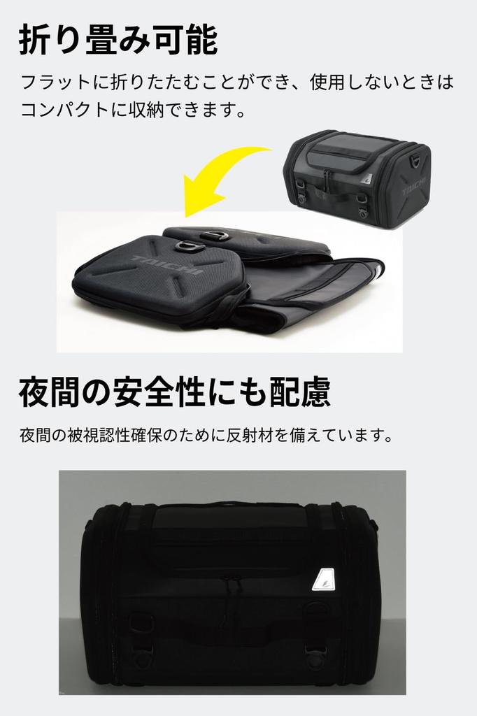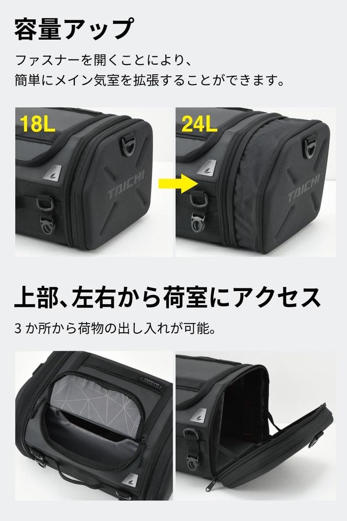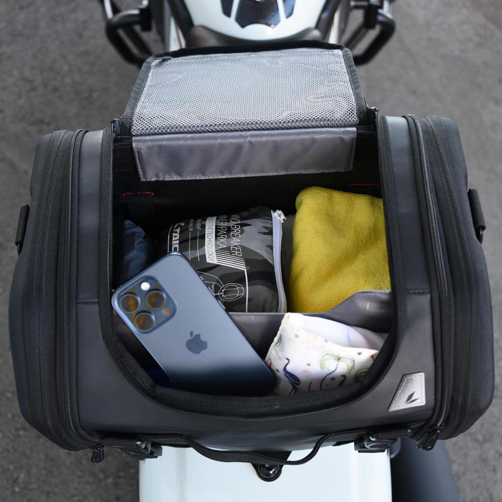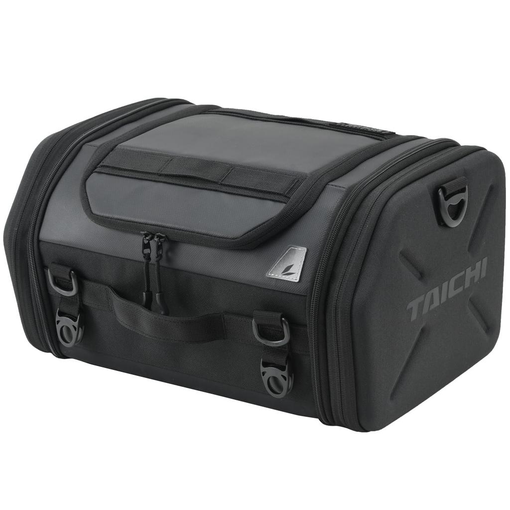 RS TAICHI 2025 Model Motorcycle Seat Car Bag with Expandable Fastening Easy Rain Cover Middle Seat Unisex Black Bag, Function, Strap, Installation,