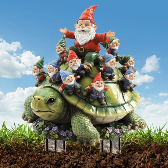 Прочная акриловая конструкция: Этот садовый колышек в виде гнома-черепахи, изготовленный из высококачественного акрилового материала, обеспечивает долговечность для использования на открытом воздухе в различных условиях.