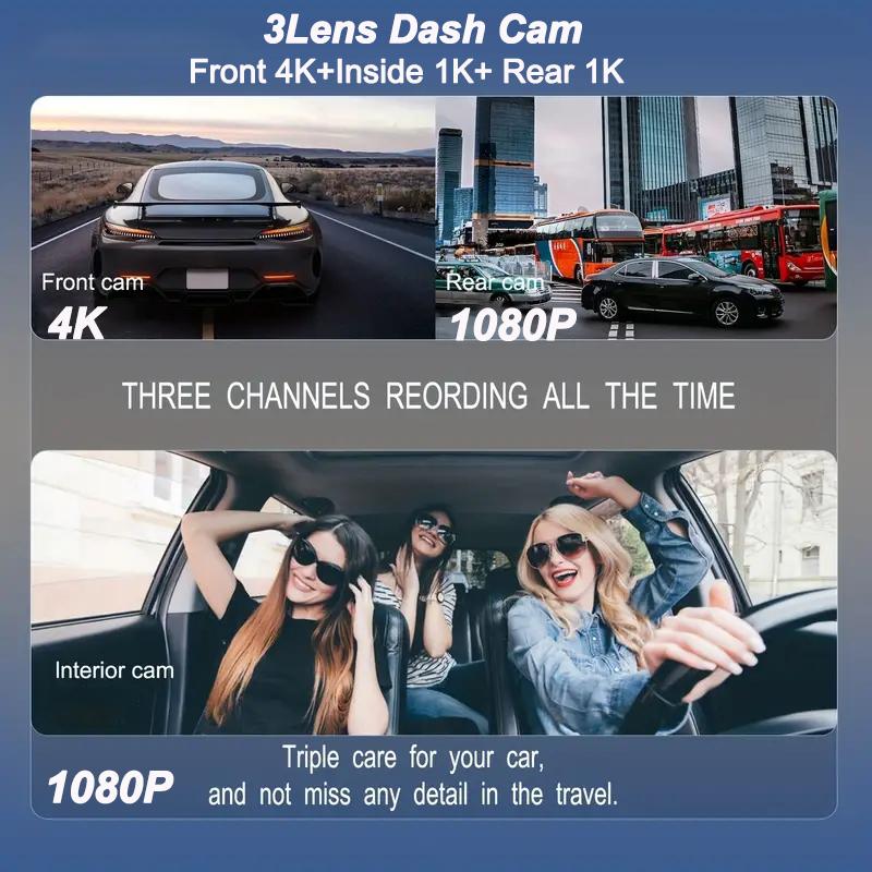 Автомобильный видеорегистратор с 3 камерами, объектив для ночной заливки, сверхбольшая диафрагма F2.0 обеспечивает идеальное ночное изображение, поэтому ночная съемка становится более четкой.