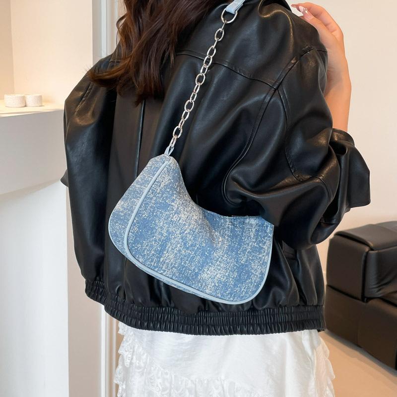 Премиальная сумка женская новая модная джинсовая сумка-багет на цепочке, модная ретро сумка-пельмень на плечо