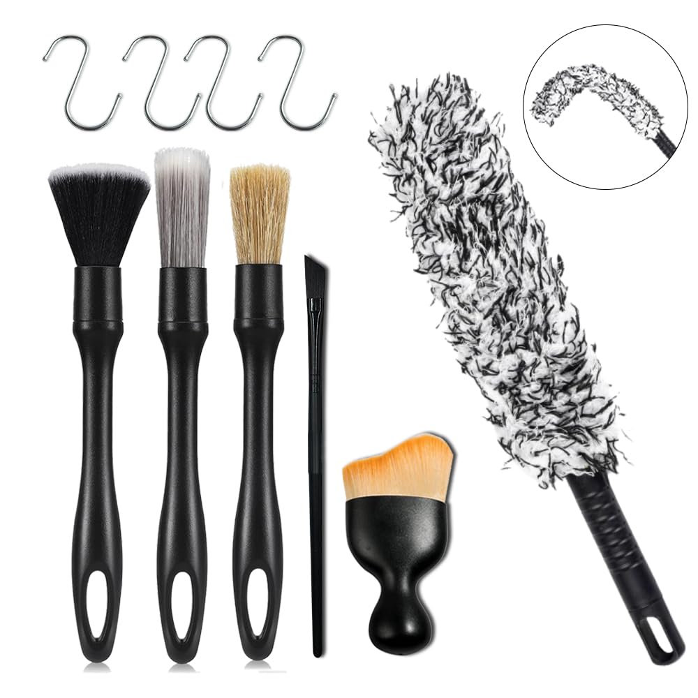 Рекомендовано автомеханиками, 6 типов, Набор из 6 щеток для мойки автомобиля: Мягкая кисть: Используйте мягкую щетку для эффективного предотвращения царапин. ✅【Средняя кисть】: Щетка из свиной шерсти. В основном используется для очистки слегка труднодоступных мест, таких как логотип автомобиля, решетка радиатора, зазор фары, зазор кузова и т. д.. ✅【Жесткая щетка】: Жесткая щетка для мойки автомобиля идеально подходит для узких зазоров и сильных загрязнений. Микрощетка: Вы указываете на грязь на эмблеме вашего автомобиля, букве, зазоре фары и зазорах кузова.. (Мягкая щетка для автомобиля) В основном используется для воздуховодов кондиционера, ручек-щелей, зазоров сидений, кожаных поверхностей и т.д.. Колесная кисть: Плоский сердечник покрыт приподнятым пылеудалителем. Сплющивание и сгибание удобны для уборки под стиральной машиной. Хотя это щеточка для колес, ею было удобно пользоваться в ванной