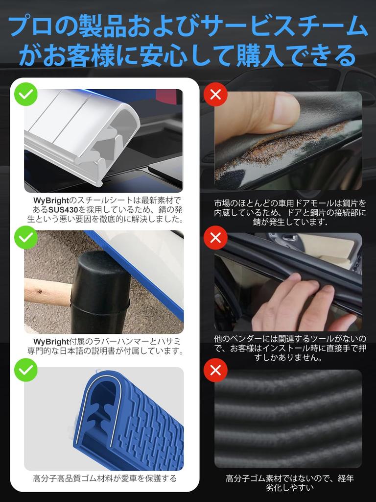 WyBright Door Mall, Car Door Edge Protector, 2024, SUS430 Stainless Steel, Includes Mounting Tools,