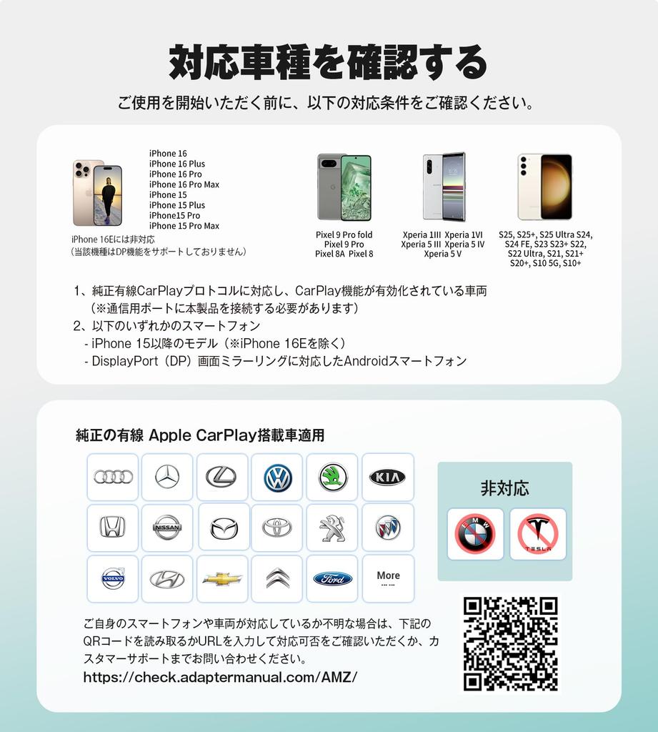 (Безопасность, Качество и Поддержка) Этот продукт произведен компанией Ottocast, имеющей много продуктов CarPlay в Японии, и получил техническое соответствие. (R201-220660_01). У нас также есть высококвалифицированная и техническая команда, чтобы помочь вам. На этот продукт предоставляется 1 год гарантии, поэтому вы можете быть уверены в случае возникновения проблем.. Если у вас возникнут какие-либо вопросы по использованию, пожалуйста, свяжитесь с нами.. Бесплатная замена будет принята в случае отказа