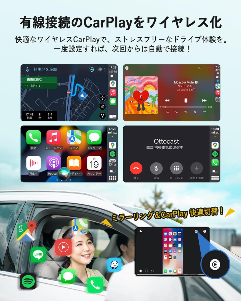 Представляем автомобильный адаптер нового поколения: Новейший беспроводной адаптер CarPlay "Ottocast Mirror Touch" позволяет зеркально отображать экран вашего смартфона на дисплее автомобиля. Вы безопасно используете функции своего смартфона, просто используя приборную панель, и водите более комфортно и безопасно.