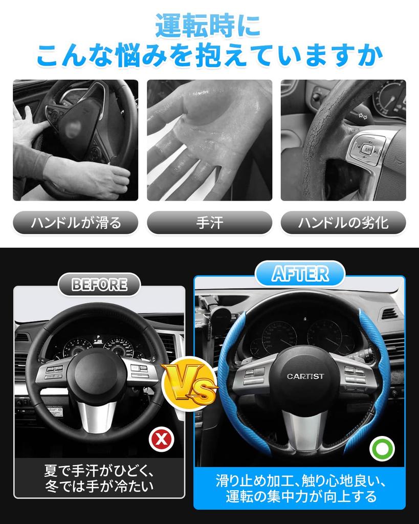 Cartist Steering Wheel Cover, For Cars, General Purpose, Light Vehicles, Carbon Fiber, Stylish, Stain