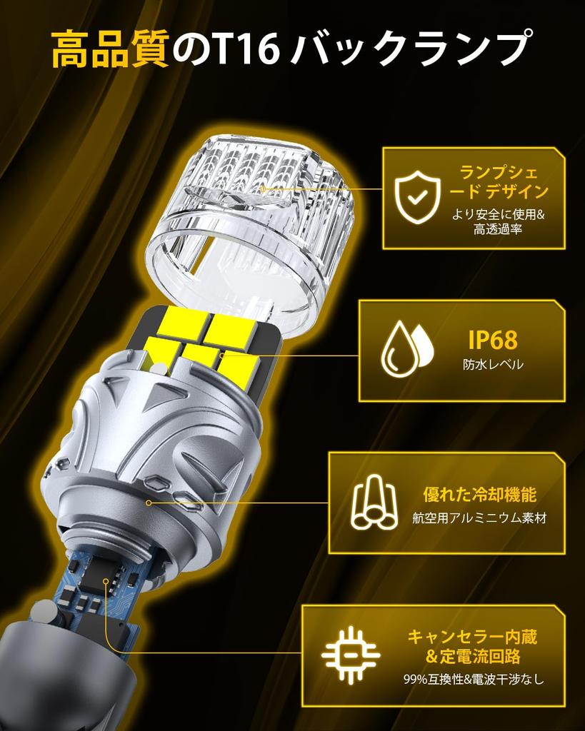 AUXITO T16 Светодиодная лампа заднего хода, 6000K, Белый, 2-кратная яркость, Высокая яркость, Всенаправленное освещение 360°,