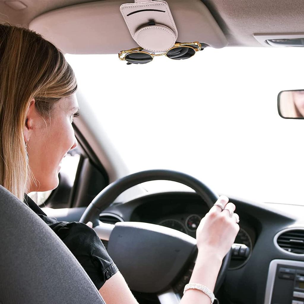 SAMCOS Автомобильный держатель для очков Зажим для очков в автомобиль Защита очков Зажим для хранения карт Кожаный вид Простая установка (бежевый)