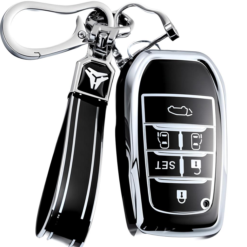 Управляется на большом расстоянии: В этом продукте используется материал, защищающий от радиопомех, поэтому он хорошо реагирует, даже если вы находитесь далеко от автомобиля.. Кроме того, он обеспечивает всестороннюю защиту вашего смарт-ключа и имеет мягкое покрытие, поэтому вы используете кнопки без какого-либо напряжения.