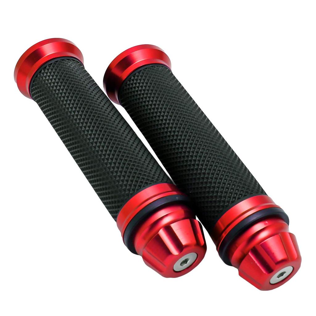 nakira 341 Grip! Bike Grips with Custom Bar End, Aluminum Handle, 0.9 inch (22.2 mm) Diameter, For Motorcycles, (Red)