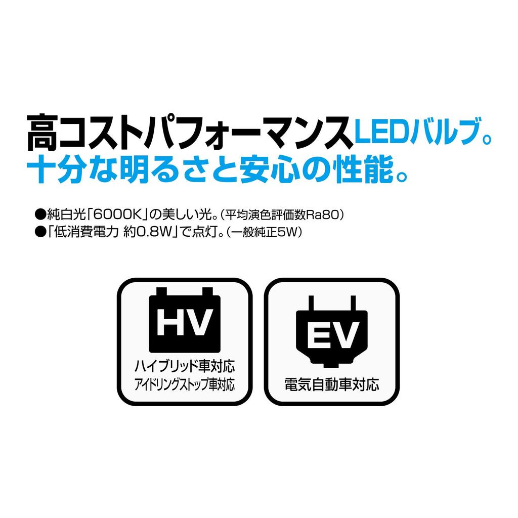 PIAA LEP127 Светодиод для габаритных огней Светодиодная лампа высокой яркости Серия 6000K 45лм T10 0.8Вт 2шт