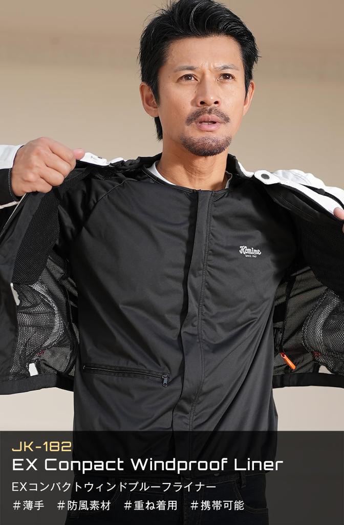 KOMINE Модель 2025 JK-182 EX Компактная ветрозащитная подкладка для мотоциклов, Ветрозащитная, Внутренний карман, Черный, 4XL