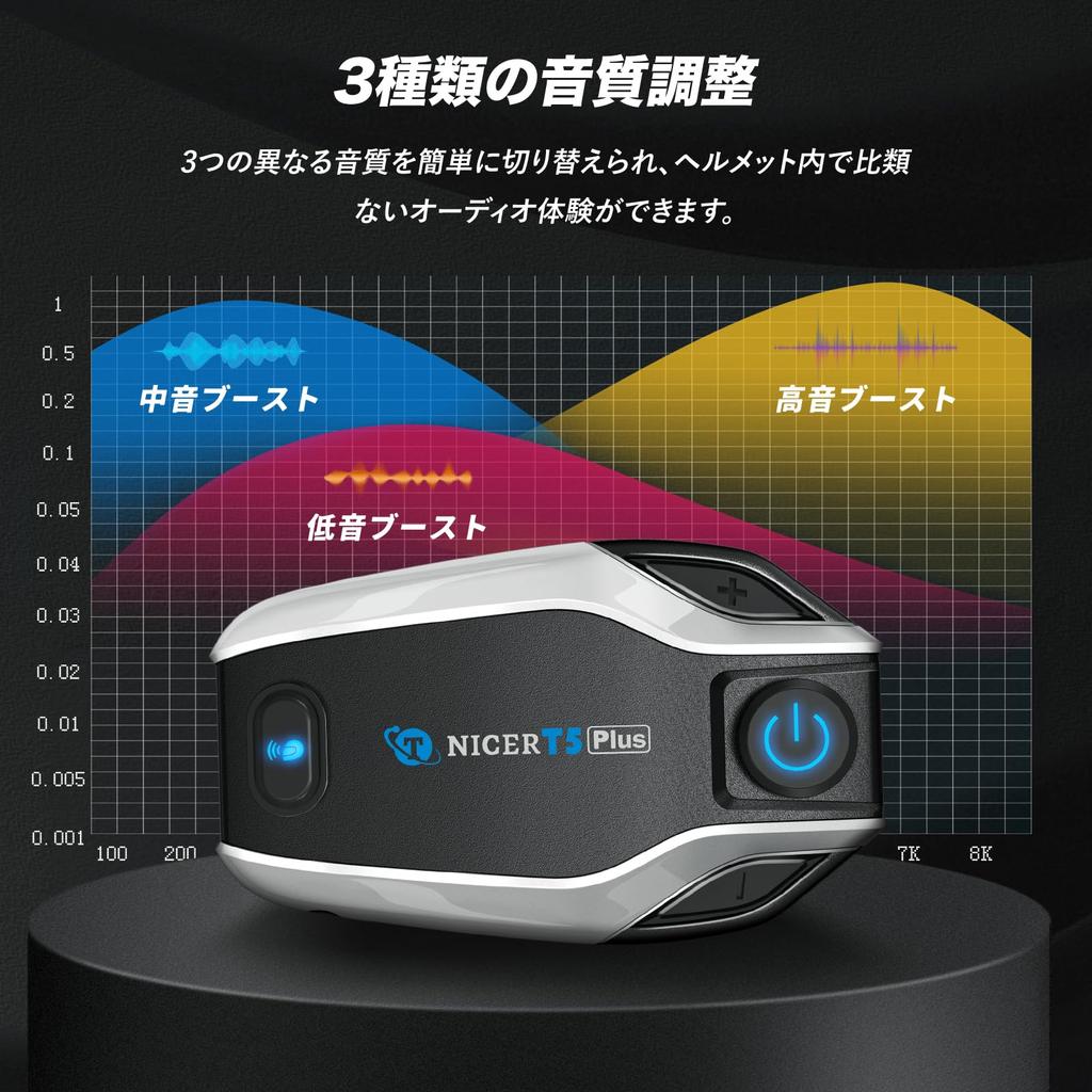 (Отличное качество звука и 3 режима регулировки звука и совместное прослушивание музыки) Мотоциклетная гарнитура T5Plus имеет встроенный чип шумоподавления CSR и обновленный динамик высокого разрешения.. Велосипедная гарнитура T5Plus может свободно переключаться между 3 звуковыми эффектами, обеспечивая наилучшее качество звука.. Кроме того, T5Plus также имеет функцию обмена музыкой, так что вы можете наслаждаться теми же песнями, что и ваши друзья, во время поездки.. 【Запись: Музыкой нельзя делиться во время входящих звонков】