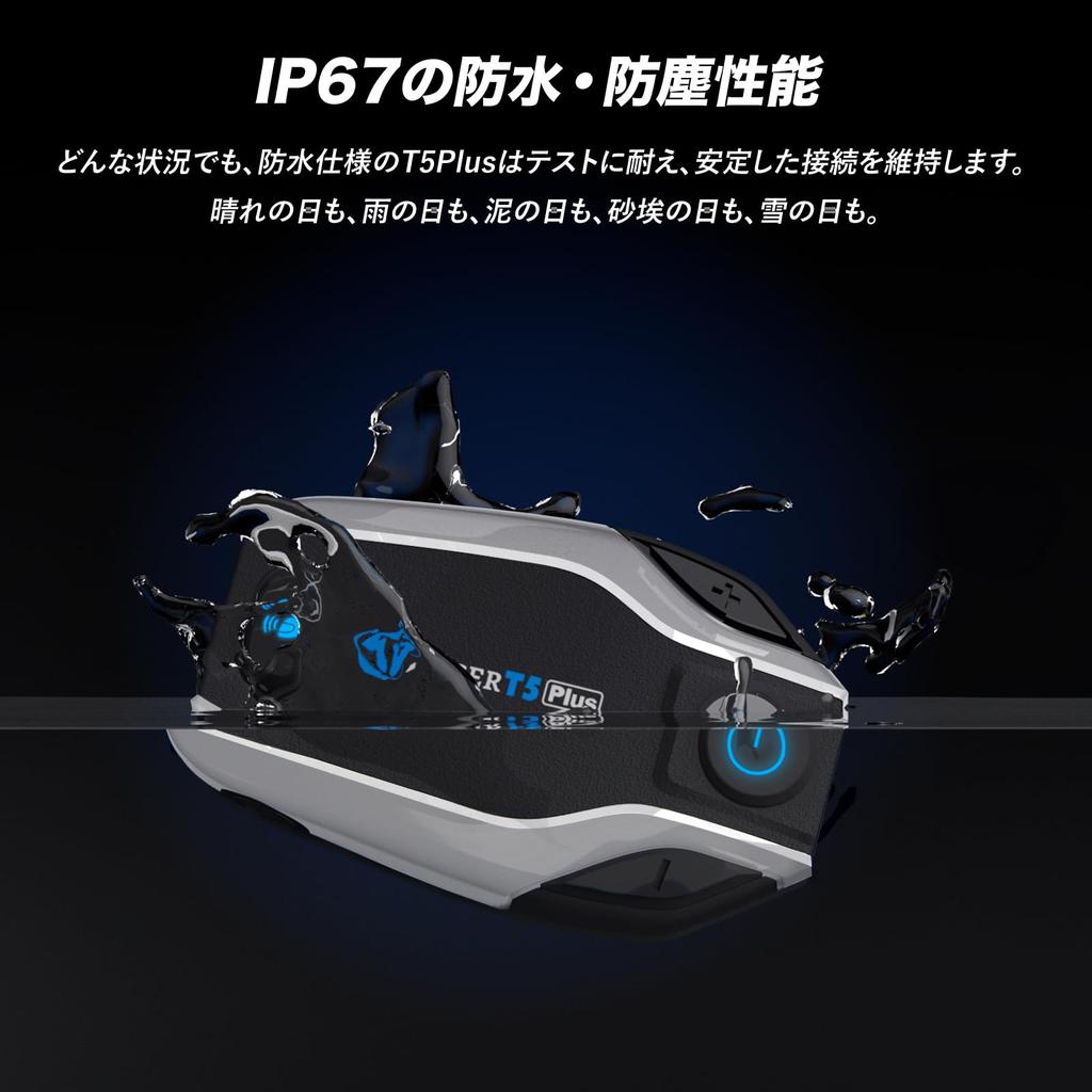 Долгий срок службы и водонепроницаемость, класс защиты IP67 и функциональность FM: Велосипедная камера T5Plus оснащена полимерным аккумулятором емкостью 900 мАч, обеспечивающим до 30 часов воспроизведения музыки, 30 часов в режиме разговора и 600 часов в режиме ожидания.. Мотоциклетная рация T5Plus является водонепроницаемой по стандарту IP67 и готова к использованию. Он выдерживает суровые погодные условия, такие как песок, дождь, штормы, снег и низкие температуры до 0°C. Этот продукт также имеет функцию FM-радио, поэтому вы принимаете FM-вещание со всей Японии.. Пожалуйста, используйте зарядное устройство менее 5 В 1 А для зарядки