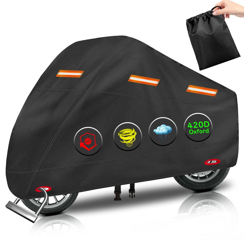 OWEEIO Motorcycle Cover, 420D Thick, All Weather Windproof, Waterproof, Heat Resistant, Double Sewn, Tear