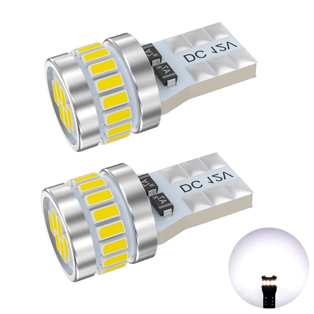 Комплект из 4 ламп T10 для 12 В автомобилей: Оснащен 18 высокоэффективными светодиодными элементами 3014 с высокой люминесценцией и углом обзора 360° во всех направлениях, со встроенным канселлером, поэтому для большинства транспортных средств ошибки не возникают.