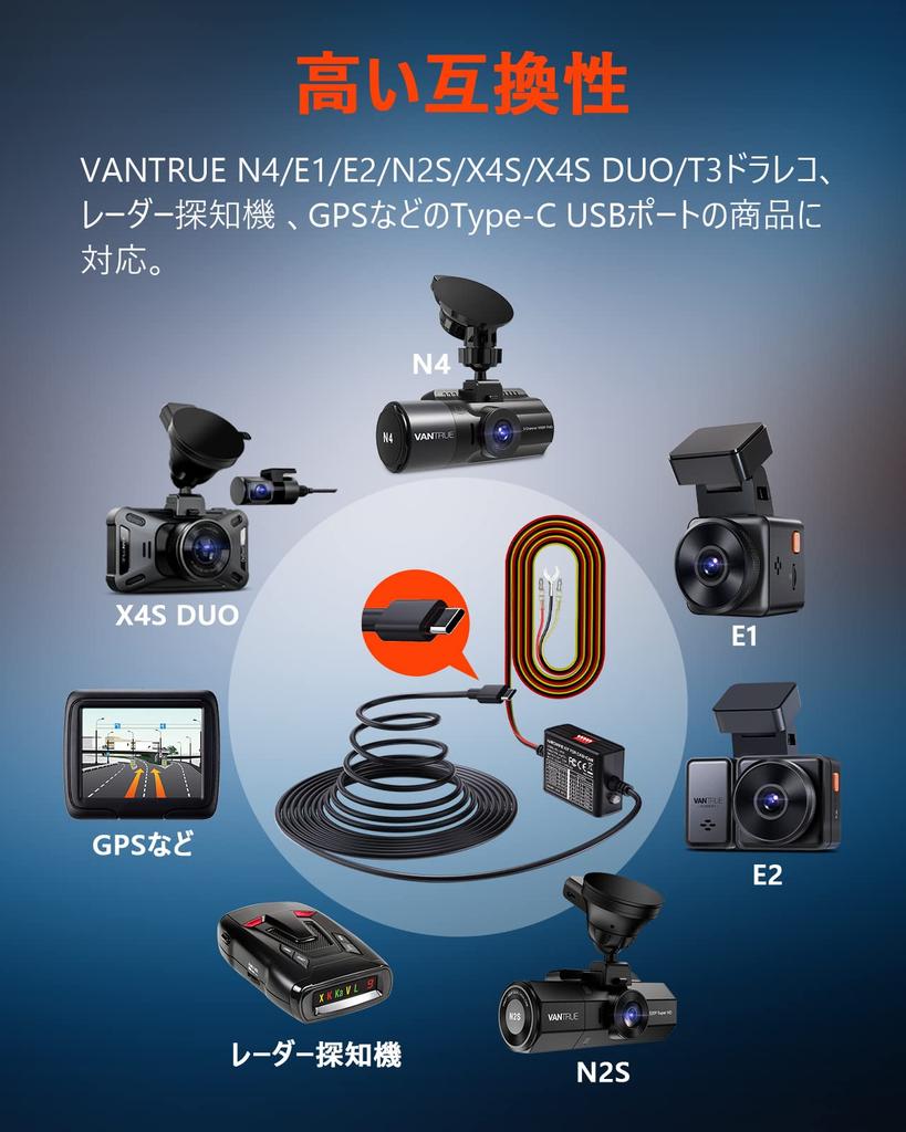 【Высокая совместимость и совместимость с портом USB Type C】Совместим с видеорегистраторами VANTRUE N4/E3/E2/E1/E1Lite/N2S//N2Pro/X4S/X4S DUO/T3, радар-детектором, GPS и другими портами USB Type C. ★Если у вас возникнут какие-либо проблемы или вопросы во время использования, пожалуйста, не стесняйтесь связаться с нами через службу поддержки или Amazon, чтобы решить вашу проблему и найти ее решение.
