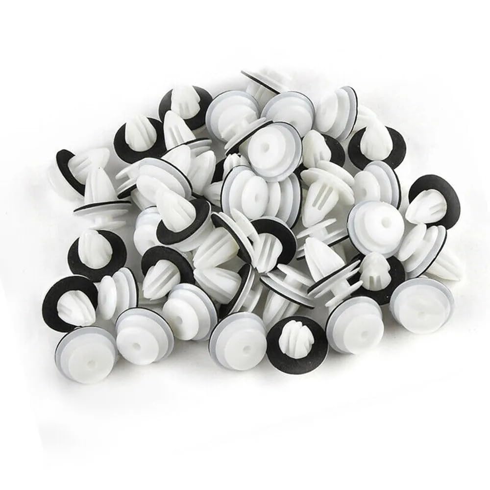 4.Материал:Нейлон, цвет:Белый,Упаковка:Набор из 100 штук клипс-пистонов + губка