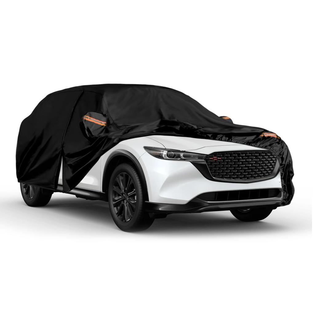 Толстая и ворсованная подкладка: Чехол для автомобиля использует ПЭ, ПЭВА, алюминиевую пленку и хлопковую подкладку. ПЭ на 100% водонепроницаем, алюминиевая пленка защищена от УФ-лучей, а ПЭВА устойчив к истиранию. Поверхность ткани обработана для отталкивания и имеет серебристое покрытие для изоляции.. Не нужно беспокоиться о повреждении, если хлопковая подкладка будет тереться о машину при сильном ветре.