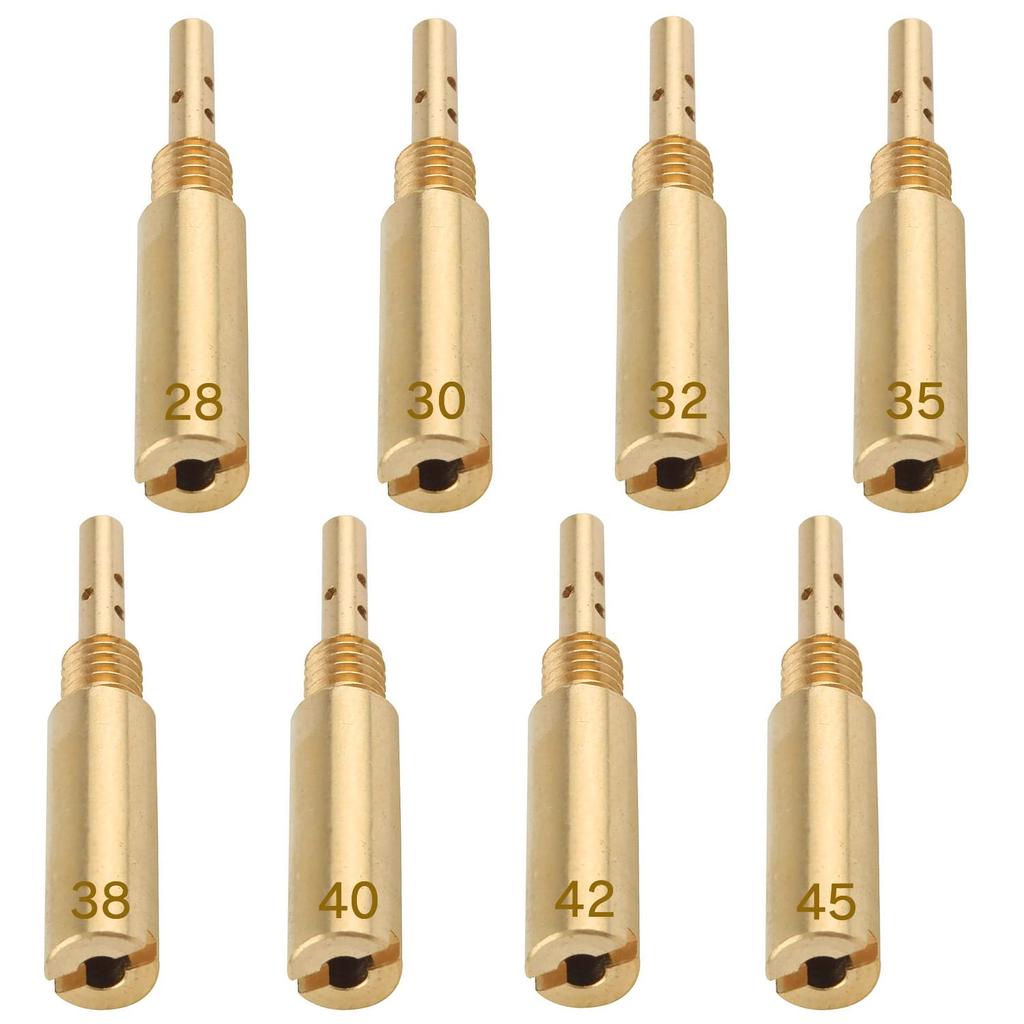 Детали пилотного жиклера: Набор пилотных жиклеров 28, #30, #32, #35, #38, #40, #42, #45, всего 8 Пожалуйста, убедитесь, что ваш карбюратор подходит, перед покупкой