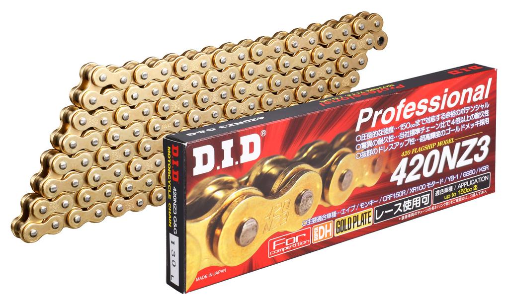 D.I.D 420NZ3-138RB G&G (Золото) Мотоциклетная цепь, в комплекте замок-клипса, обработка штифтов SDH, для мотоциклов