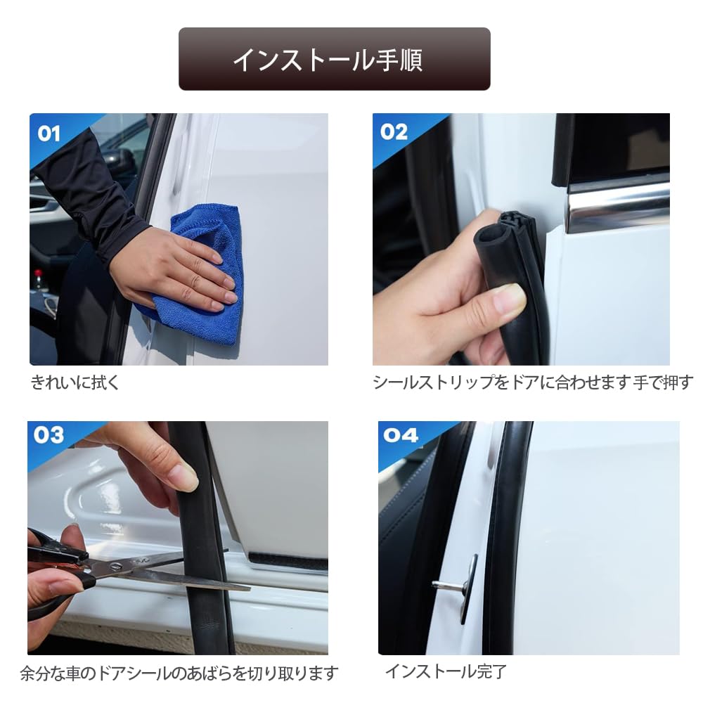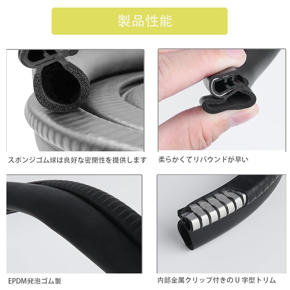 【Простая установка】Эта уплотнительная лента для автомобильной двери легко устанавливается без клея. Просто вставьте U-образную уплотнительную полосу по краю, слегка прижмите и отрежьте излишки для завершения установки.