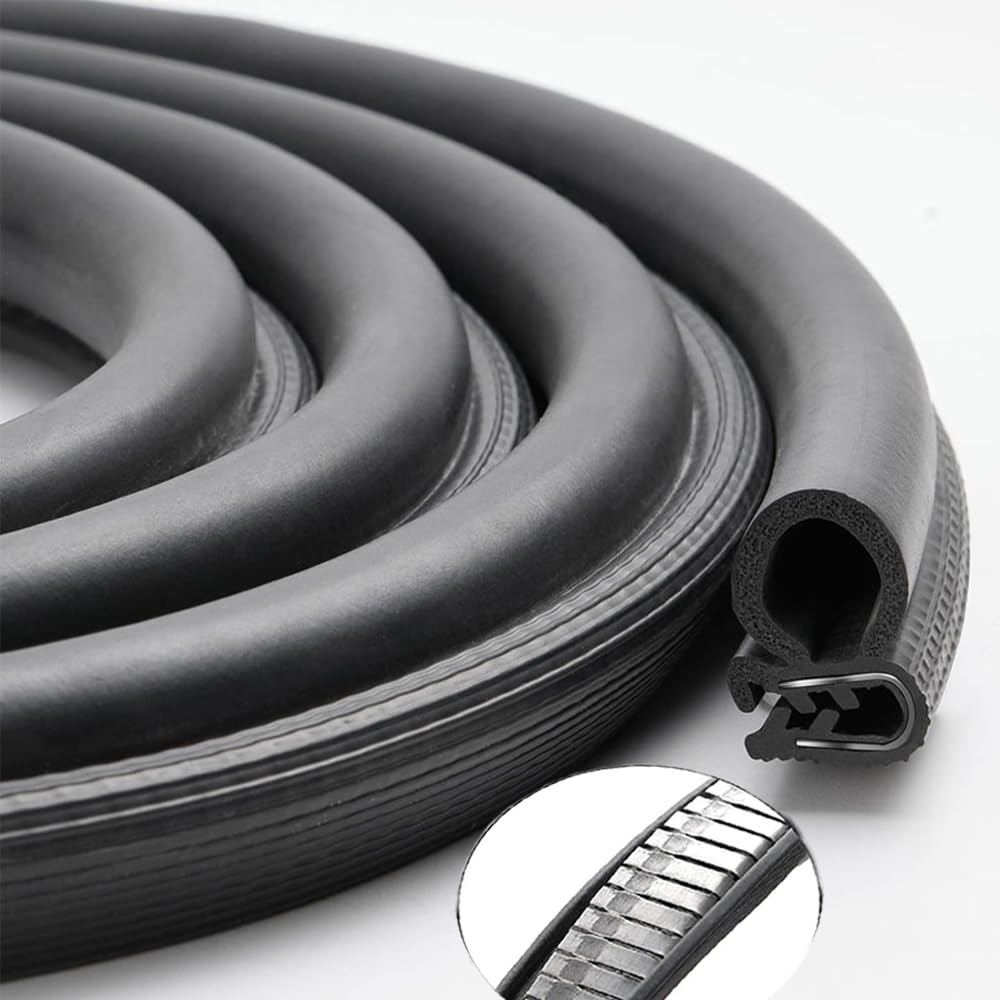 Структура продукта и измерения: Этот дверной резиновый уплотнитель 13,3 фута (6 м) длинный. U-образная кромка включает внутренний металлический зажим, который прочно фиксируется в месте установки и обеспечивает превосходное удержание, а также резиновую кромку, которая обеспечивает надежную герметизацию для различных применений.