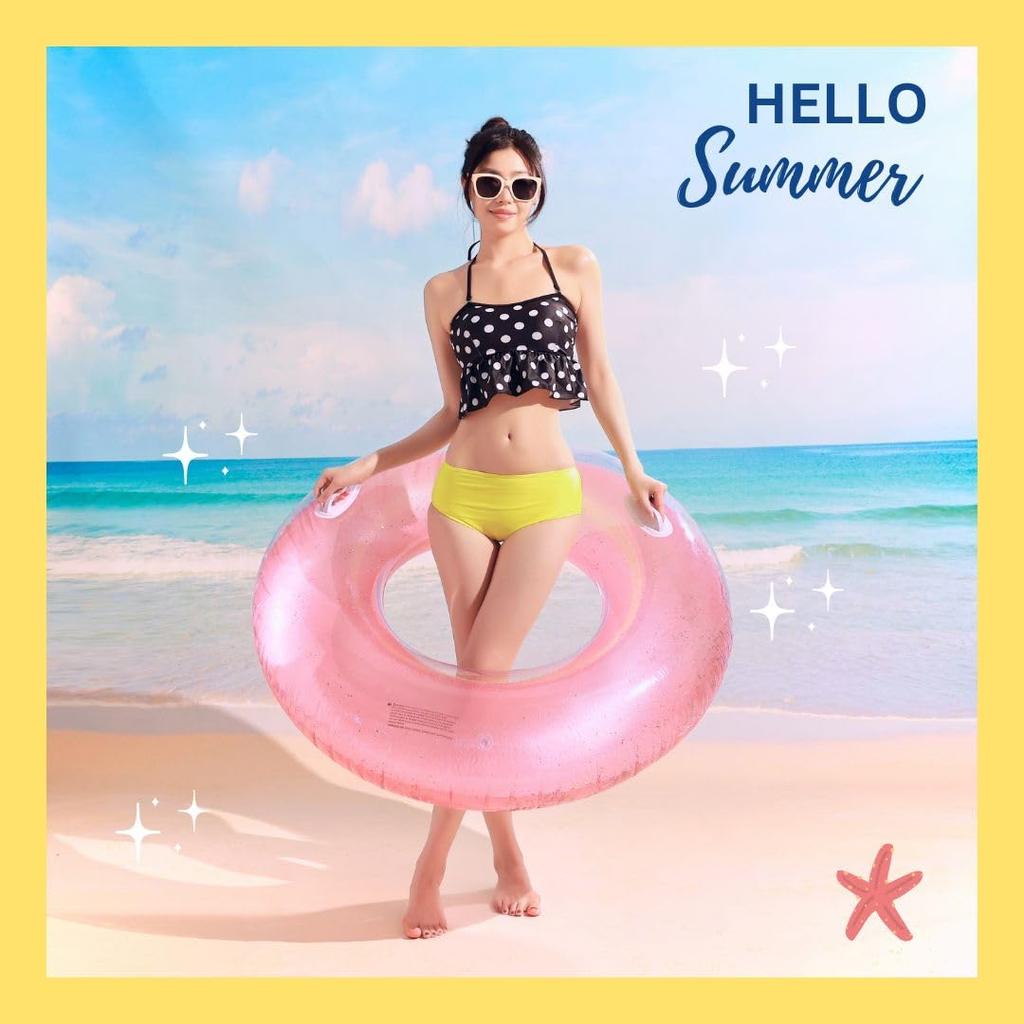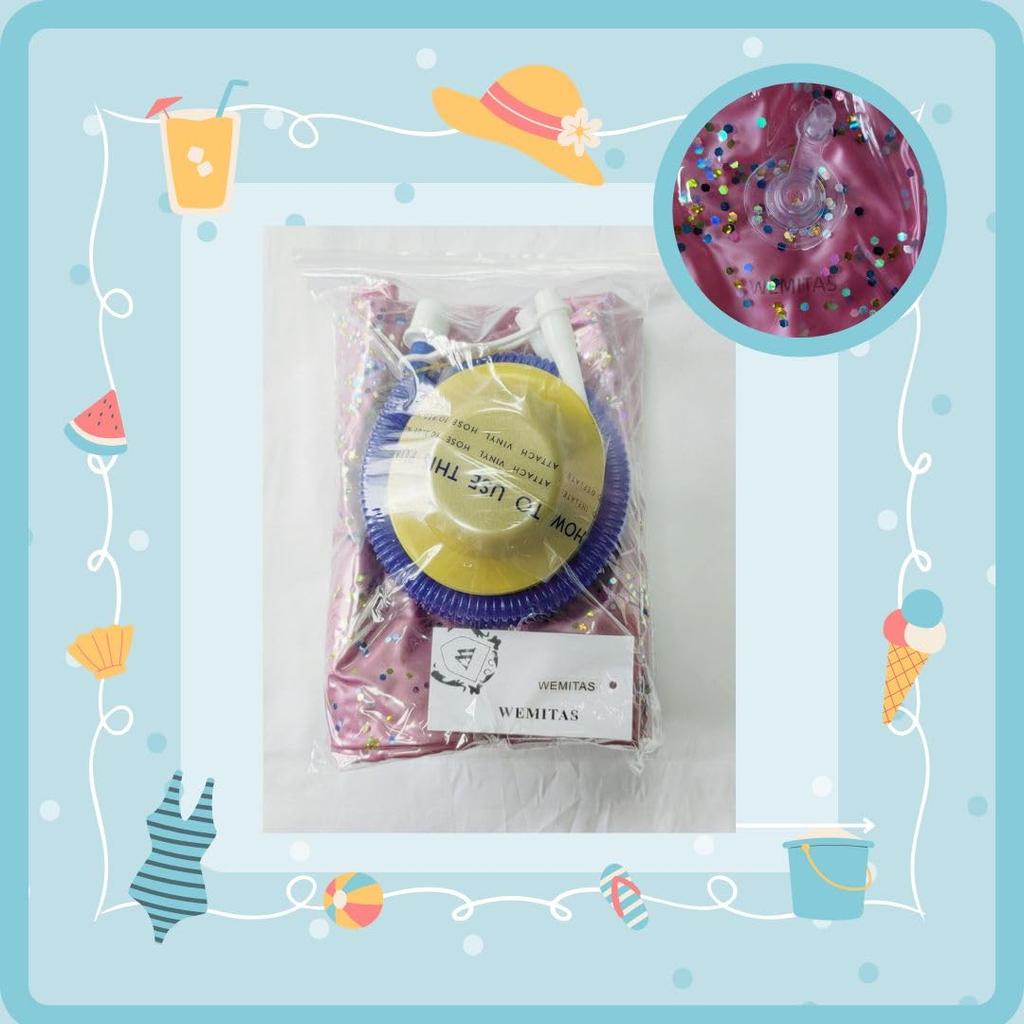 Wemitas Взрослый 120мм Очень большой Поплавок с Включает Набор для ремонта Поплавок, 100мм, Ручка, Розовый, Блестящий, Насос, Лента, 3 штуки (Розовый, 120 мм)