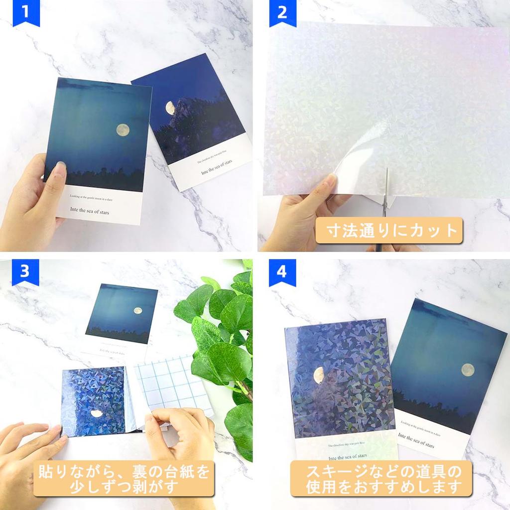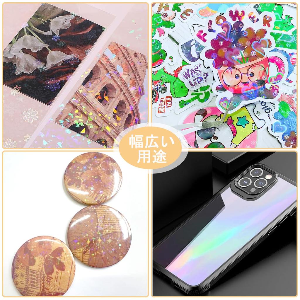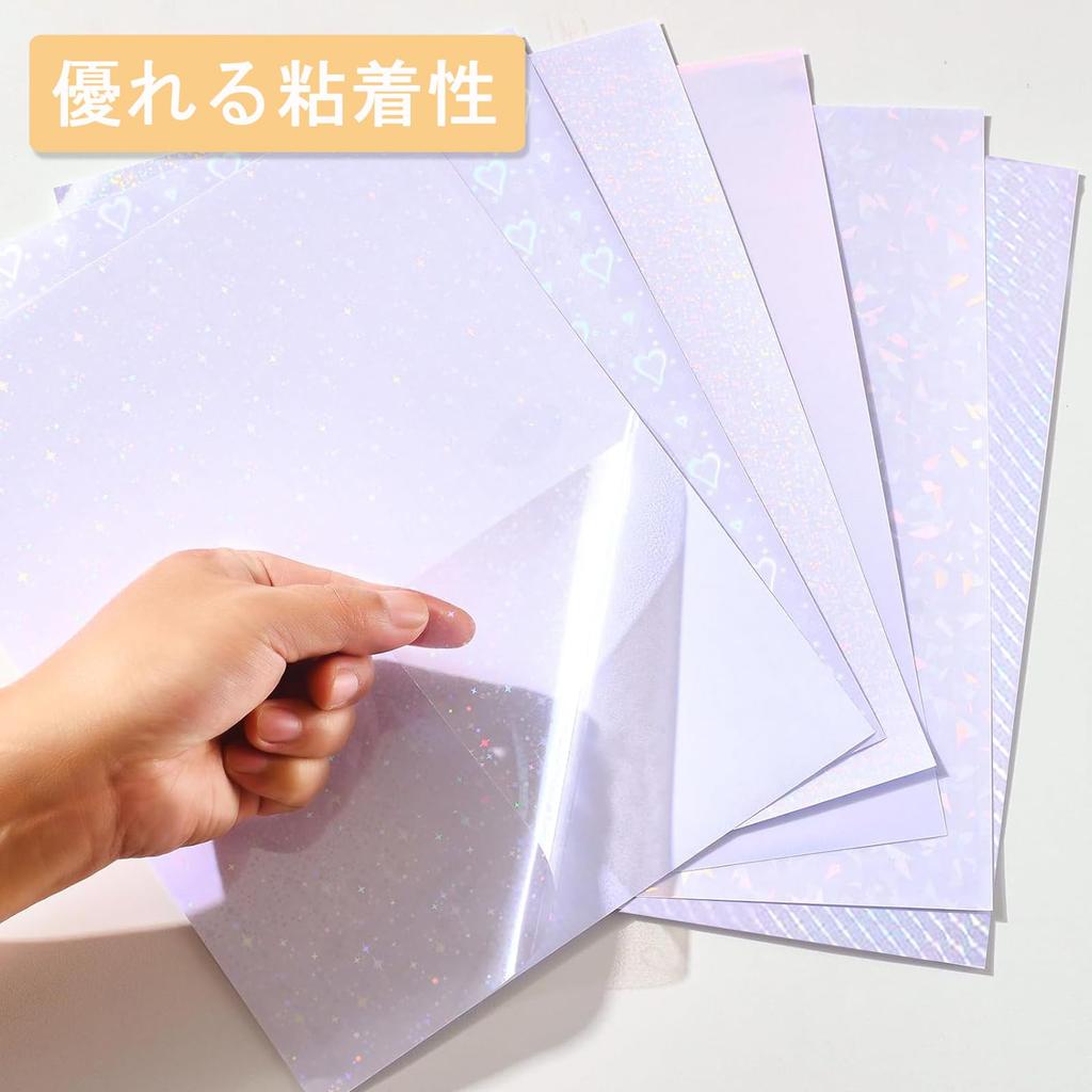 Этот прозрачный лист позволяет вам наслаждаться сверкающим голографическим эффектом, просто наклеив его.. Он переливается всеми цветами радуги в зависимости от угла падения света.. Поскольку он в листовой форме, с ним легко обращаться. Вы можете наклеить его прямо на фотографии или обложки блокнотов, или вырезать его в желаемую форму, чтобы создать оригинальные вещи! Его сильные самоклеящиеся свойства и удобный формат А4 делают его подходящим для различных нужд.