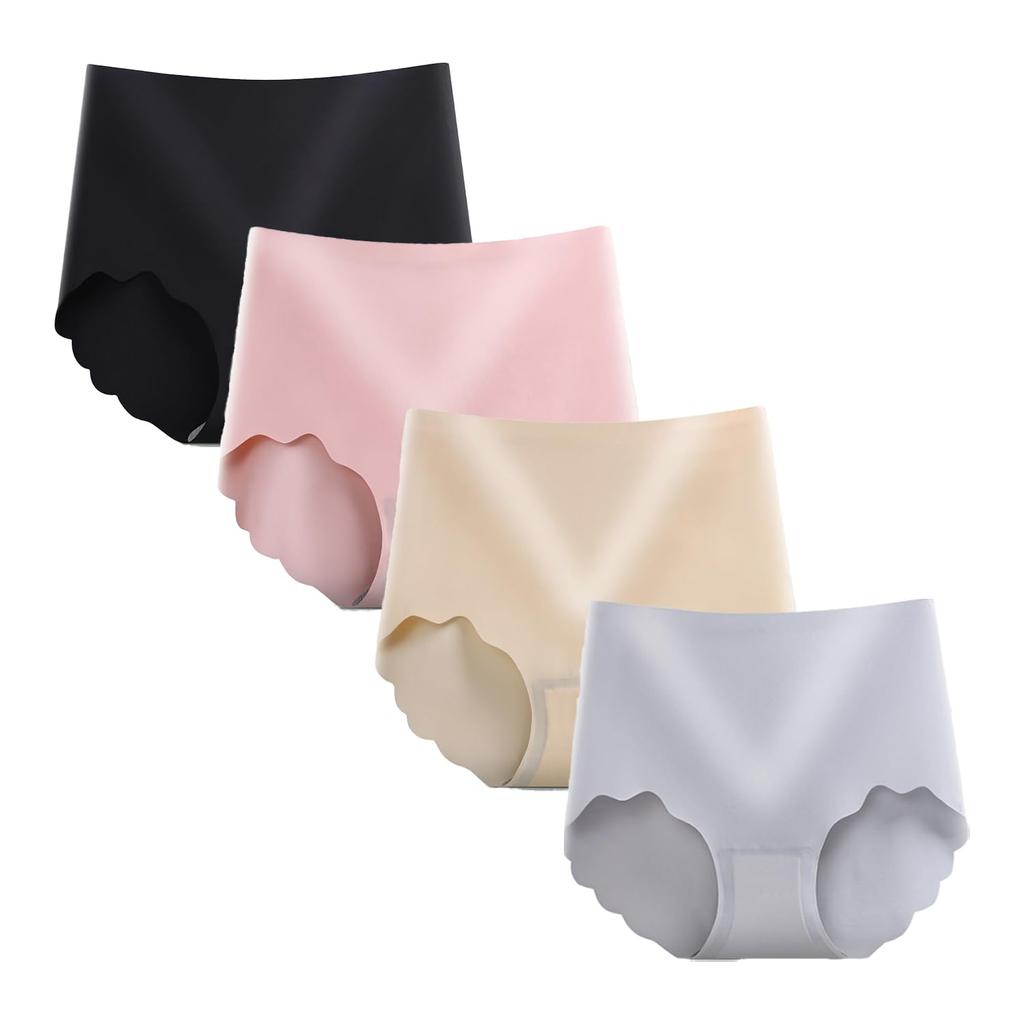 CHUJNX Бесшовные глубокие бесшовные ледяные женские трусики, трусики с высокой посадкой, шелковистые, дышащие, эластичные, 4 штуки