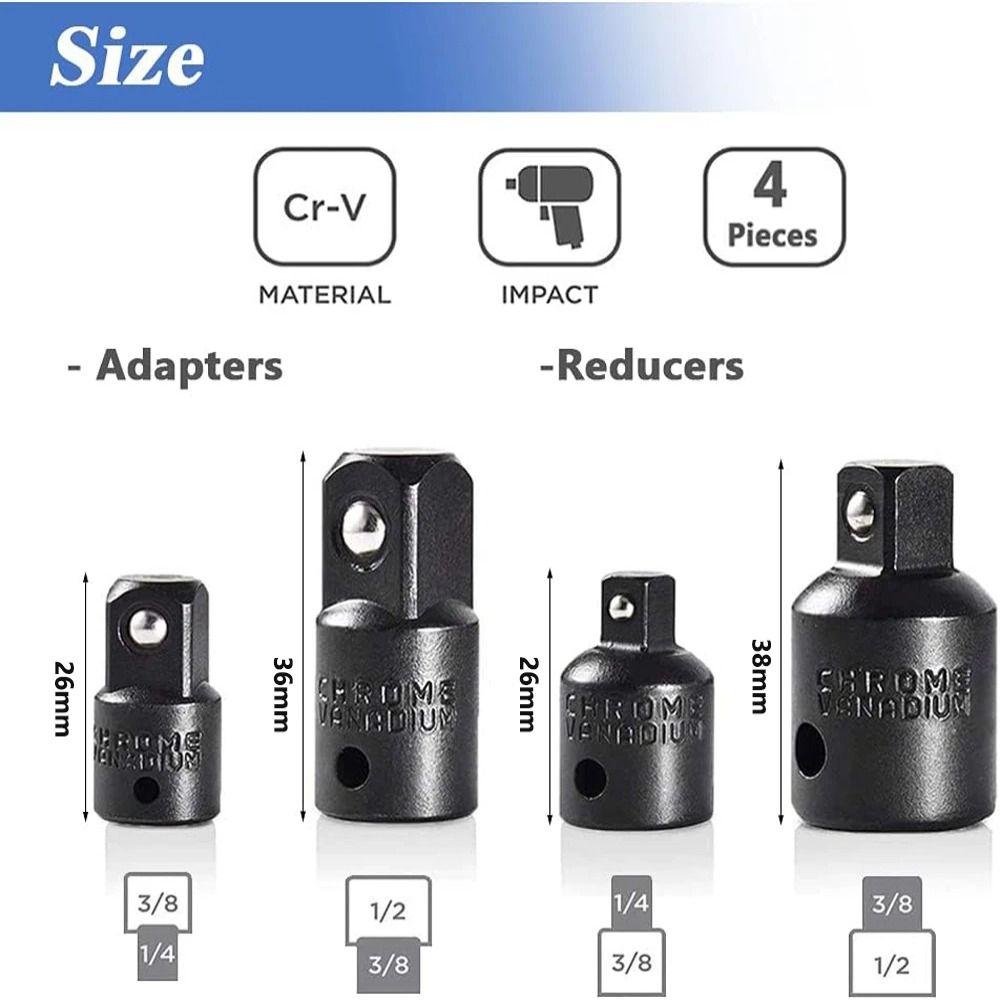 4 ШТ. Аксессуары для инструментов Адаптер ударной головки Хром-ванадиевая сталь Адаптер для гаечного ключа Переходная головка