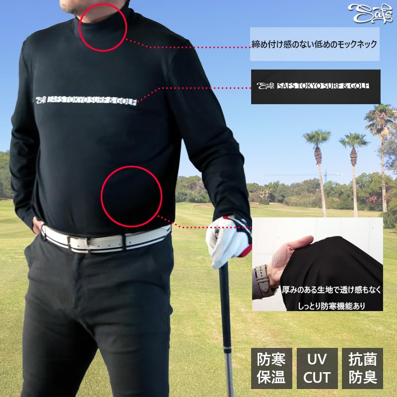 SAFS Гольф Термо Рубашка с длинным рукавом и воротником-стойкой, Охлаждающая, Размер M, Мужская, Быстросохнущая, Нижнее белье, На ощупь, Спорт, Повседневная, Черная,