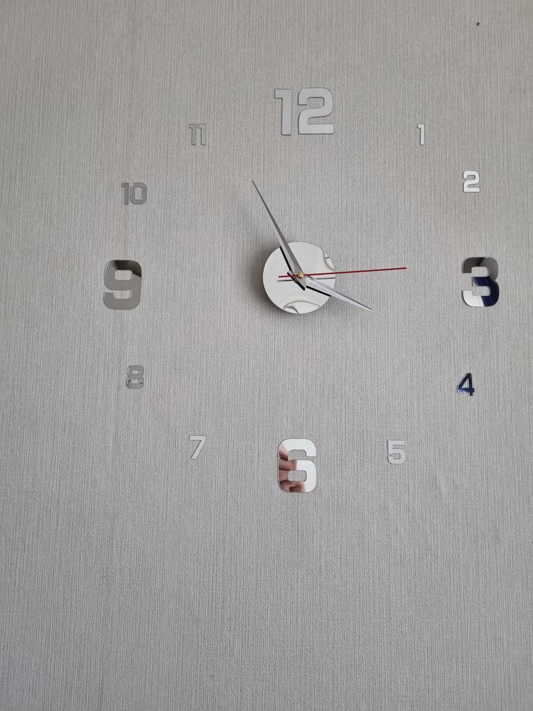 ❤️👍Настенные бесшумные часы Часы просто великолепные! Очень хорошо смотрятся на стене — будто современный элемент декора, а не просто средство узнать время. Цифры зеркальные, серебристые, блестят красиво, особенно при дневном свете или при искусственном освещении. За счёт того, что они наклеиваются отдельно, можно выбрать расположение, подогнать под свой интерьер и размер стены. Механизм работает абсолютно бесшумно — ни единого тика, что для спальни и гостиной просто идеально. Установка несложная, в комплекте есть шаблон, благодаря которому всё ровно и симметрично. Клейкая основа у цифр крепкая, держатся прочно, не отклеиваются со временем. Часы выглядят дорого и современно, сразу придают комнате уют и стиль. Отлично подойдут для минималистичного или современного интерьера. Покупкой очень довольна — работают тихо, выглядят шикарно и привлекают внимание гостей. Рекомендую!