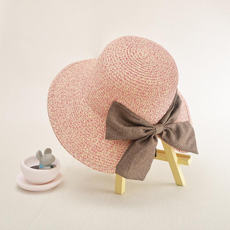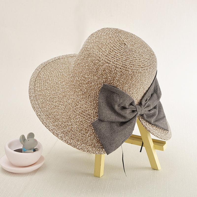 Новый женский солнцезащитный козырек, женская пляжная шляпа, модная дорожная солнцезащитная соломенная шляпа с большим краем и большим бантом с раздвоенными концами