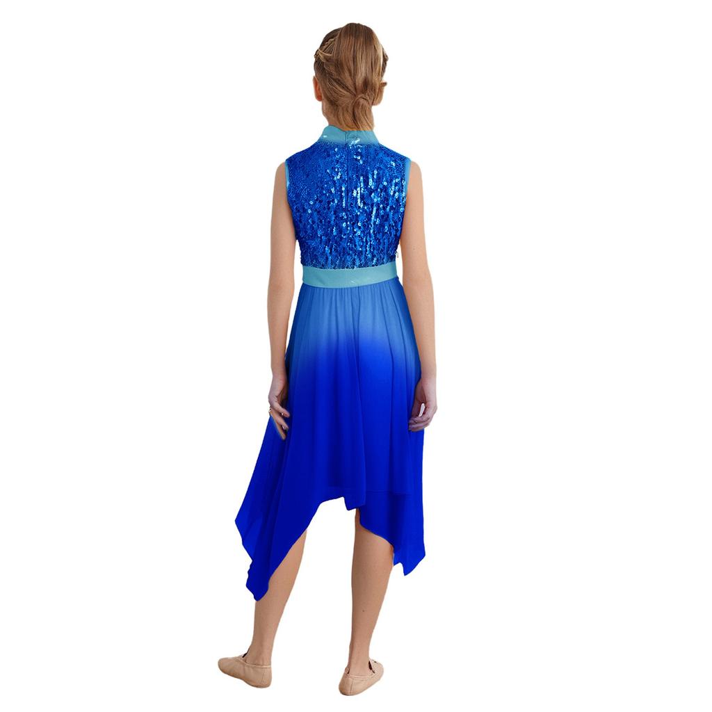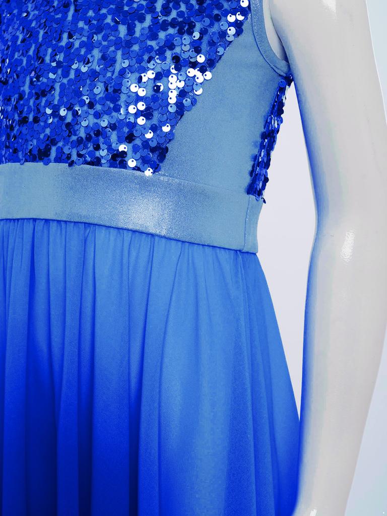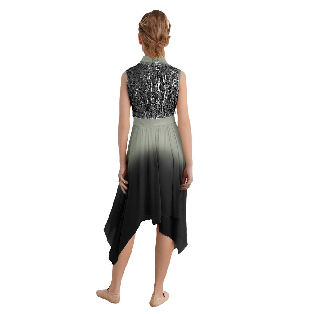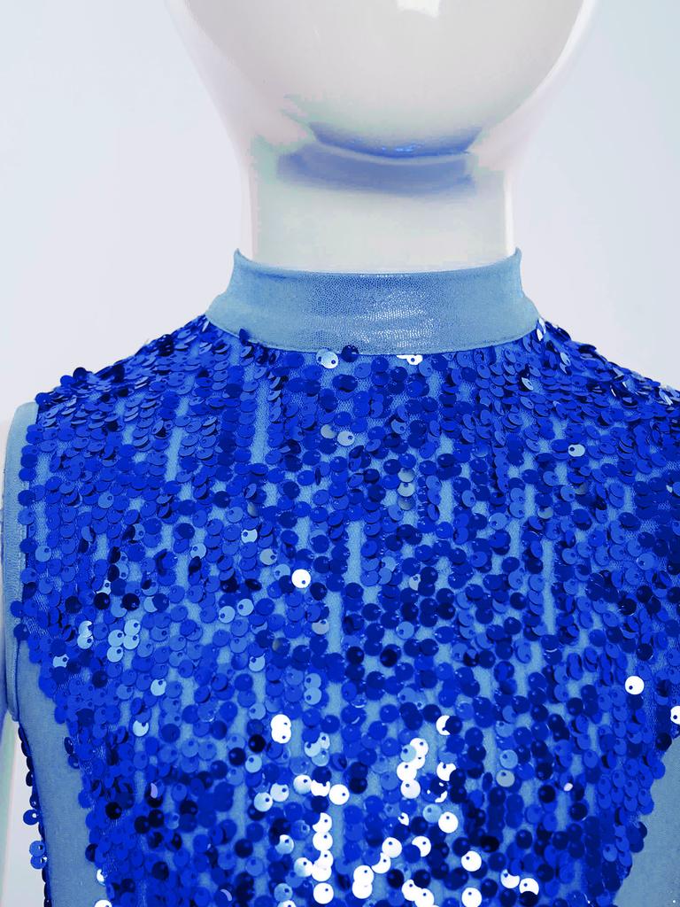 Костюм для танца поклонения для девочек - Туника без рукавов с воротником-стойкой, асимметричным подолом и блестящими пайетками