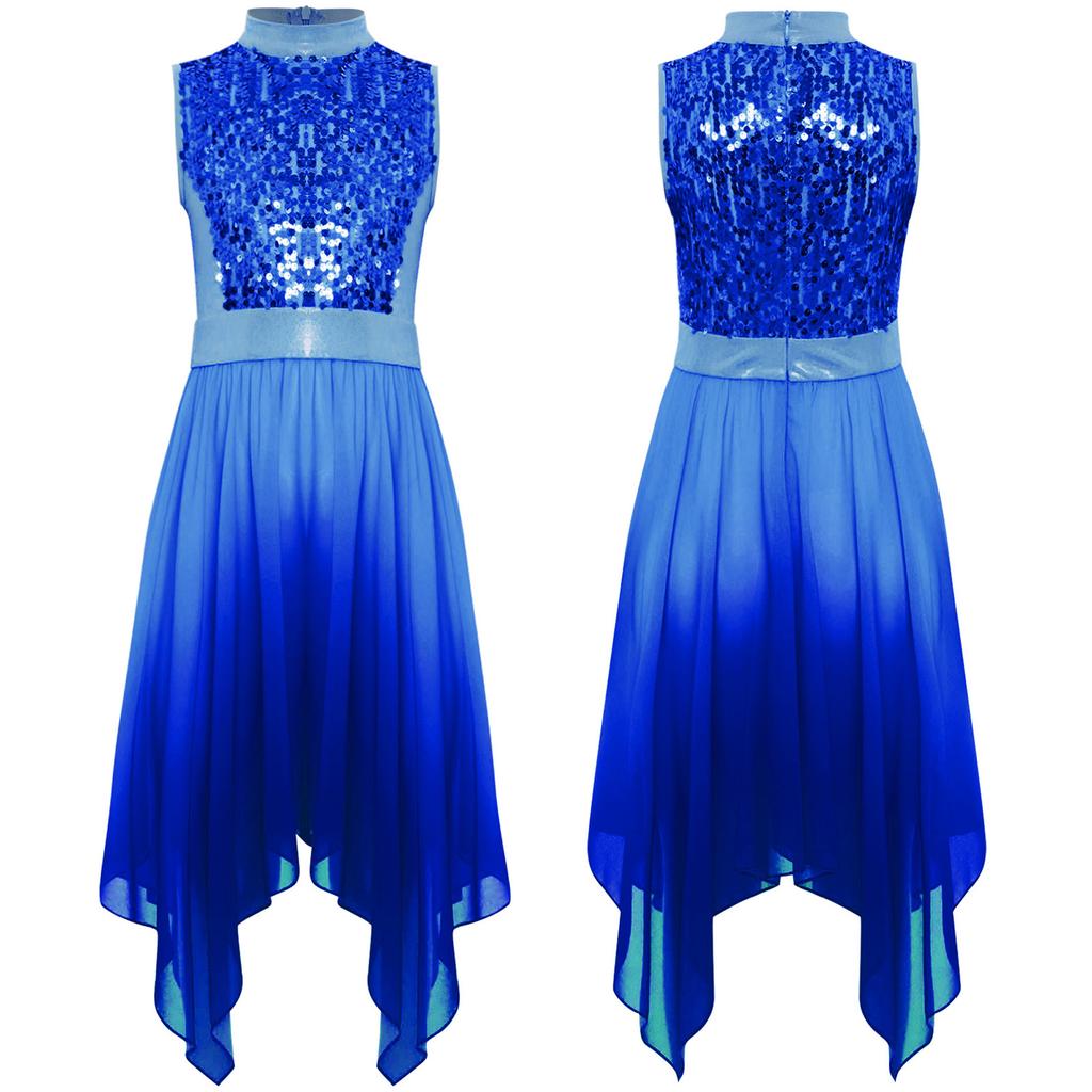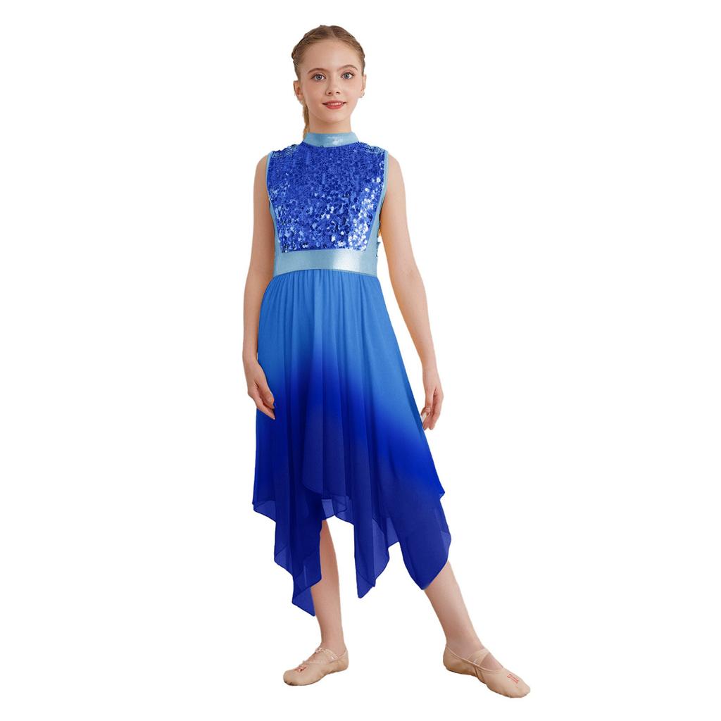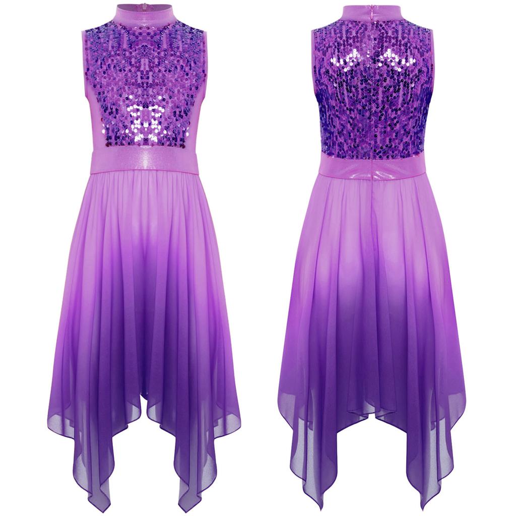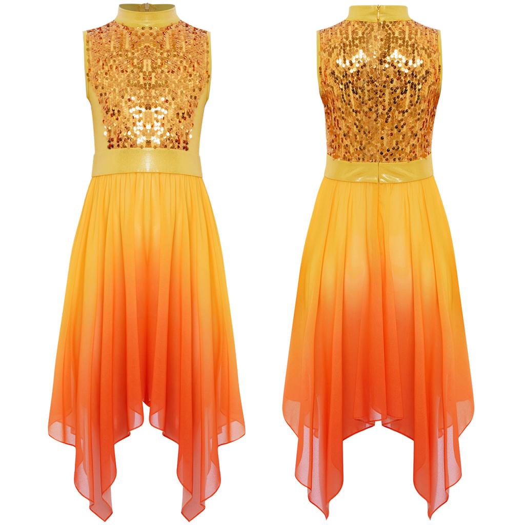 Костюм для танца поклонения для девочек - Туника без рукавов с воротником-стойкой, асимметричным подолом и блестящими пайетками