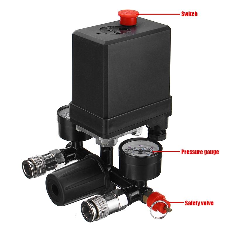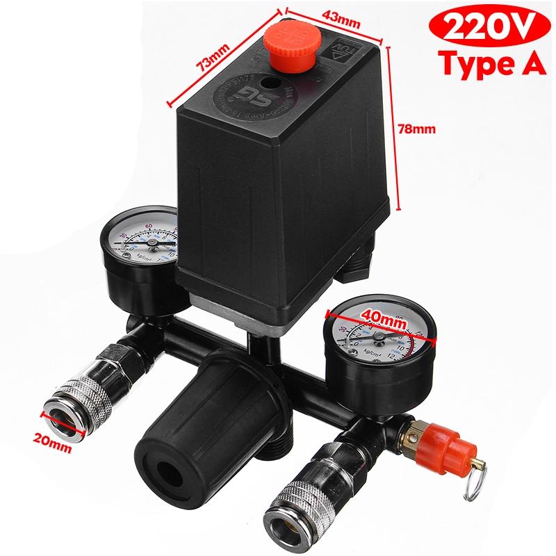 Регулятор 220В/380В, переключатель управления насосом воздушного компрессора, 0-180 фунтов на кв. дюйм, 3500 л/мин, клапан управления давлением воздушного насоса 7,25-125 фунтов на кв. дюйм + манометр