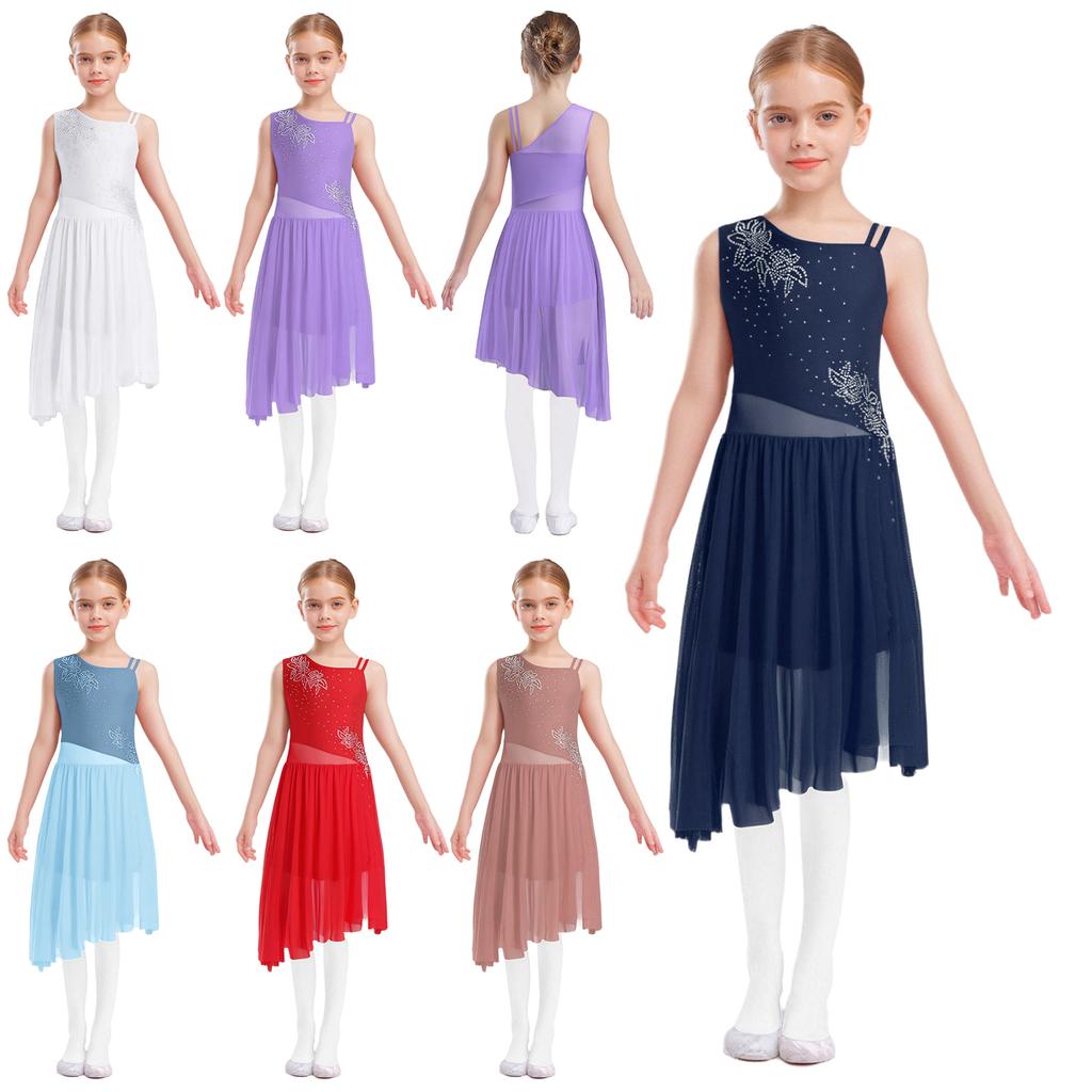 Платье для лирического танца для девочек, без рукавов, с блестящими стразами, с цветочным узором, асимметричный дизайн с боковым разрезом, купальник — купить товар онлайн с бесплатной доставкой по всему миру!