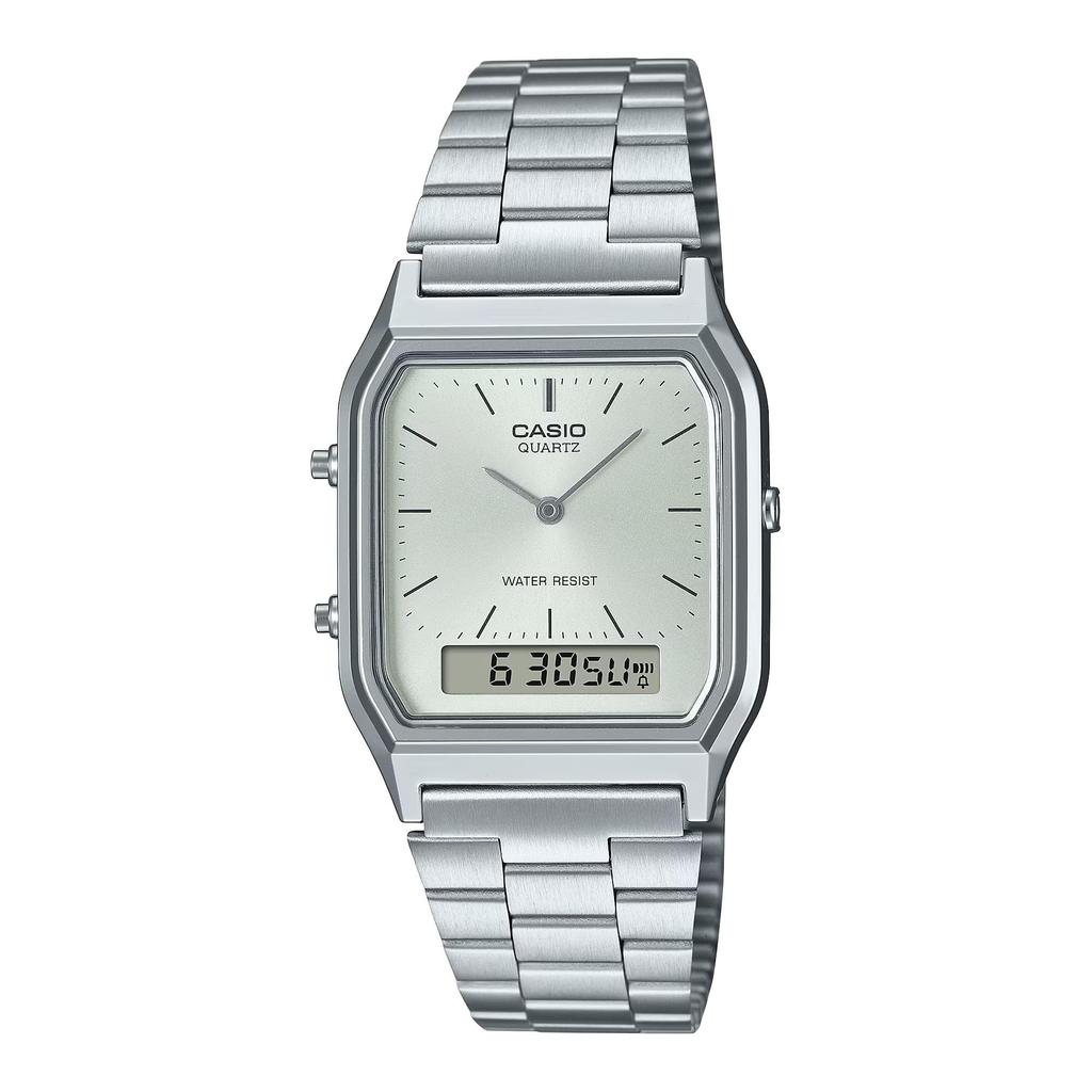 Casio AQ-230A-7A Серебряные аналогово-цифровые часы, Один размер, с серебряным браслетом