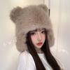 Милая плюшевая шапка с медвежьими ушками, женская зимняя, для защиты от холода при езде на велосипеде, утолщенная, теплая, закрывающая лицо, шапка с маленькими ушками