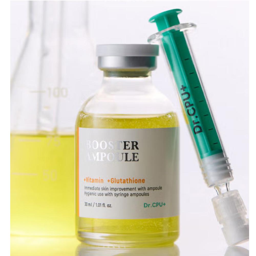 Dr.CPU+ Booster Ampoule Shot — это функциональная отбеливающая и ревитализирующая ампула, содержащая глутатион, витамин С и 5 типов церамидов.. Придает жизненную силу тусклой коже, помогает осветлить тон кожи и глубоко увлажняет для более здорового цвета лица.