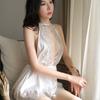 Sexy underwear lace short skirt nightclub anchor seduction deep V sexy backless women's suspender open fork suit pure desire